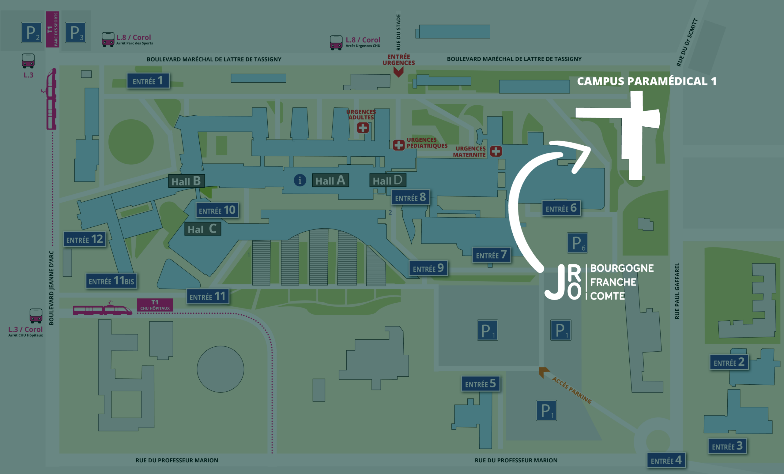 Lieu de l’événement : CHU Dijon Bourgogne – bâtiment « Campus paramédical 1 ».